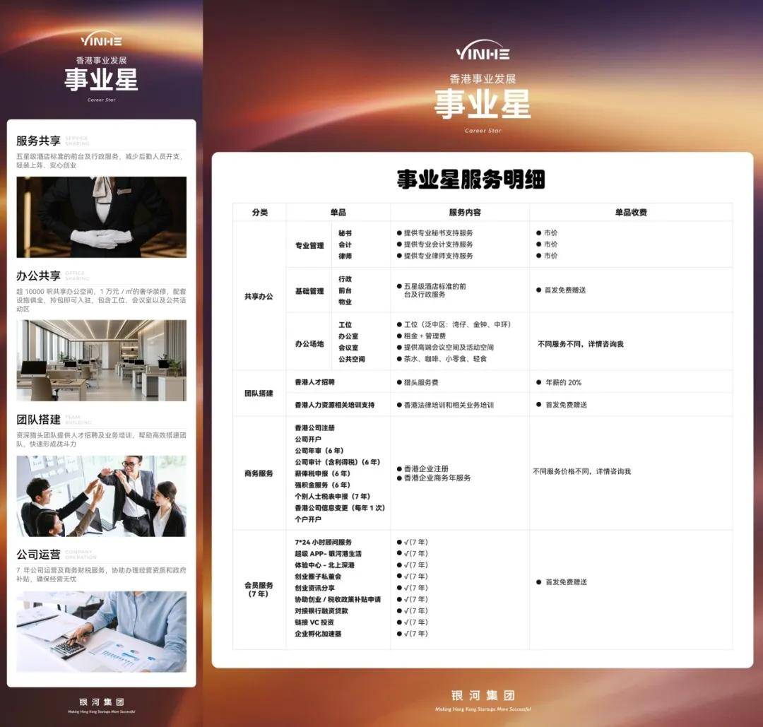 如果你想要去香港开公司发展事业,不知道如何招聘人,搭建团队,不知道如何租赁办公室,银河集团为您提供全方位的“事业星”服务。找银河Daiwei
