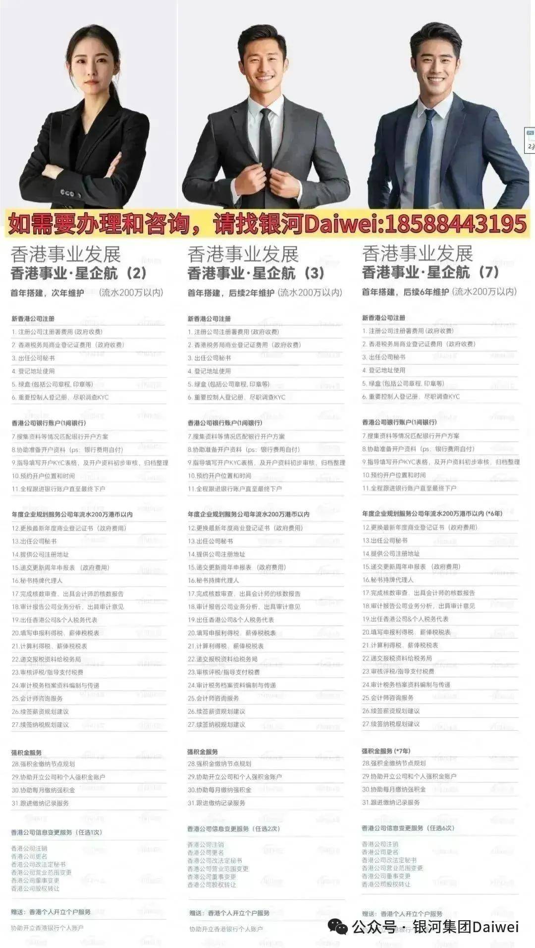 对于计划在香港创业的客户,银河集团提供香港身份申请续签永居+7年香港公司注册与后续商务维护运营一站式全流程服务。需要找银河Daiwei