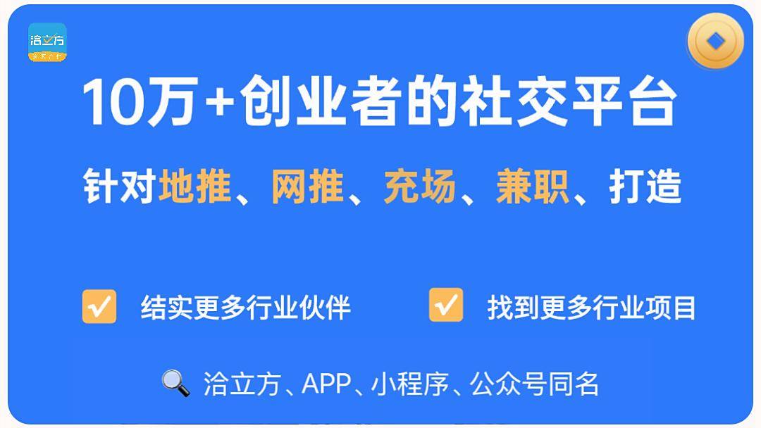 洽立方汇聚超10万+app拉新推广一手接单平台,覆盖地推拉新、渠道合作、资源对接、项目对接、等热门领域,助您轻松接单、在线洽谈、高效合作、快速变现! 找项目、找地推、找副业、找客户、找渠道、找资源,轻松拓展人脉与业务的必备APP, 一直深耕于地推拉新领域,堪称行业鼻祖。该平台整合了众多互联网类的轻资产创业项目,其资源丰富度是所有同类型平台的总和 。