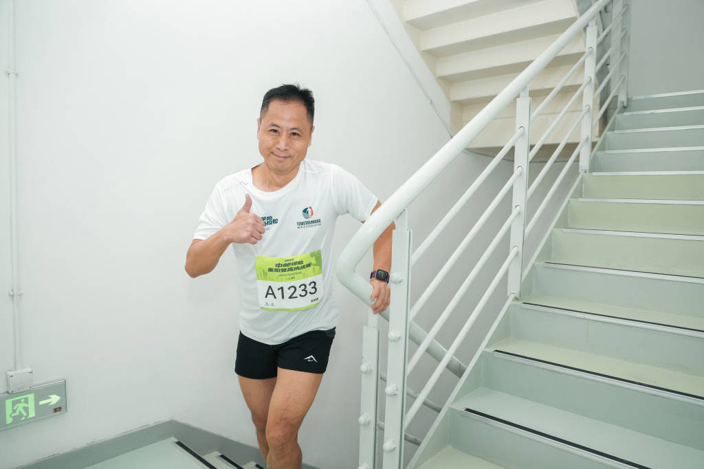 徐云飞算是一个运动达人,比赛前一天晚上,他还在自己居住的酒店附近跑了10多公里,值得一提的是,即便运动经验丰富,但第一次参加垂直登高还是让徐云飞感受到了挑战。“我原本以为能够比较轻松地完成,但跑到第15层的时候,已经明显慢了下来,这个比赛和长跑还不太一样,总共也就10来分钟,赛程比较短,讲究的是在短时间内的输出,对于个人的心率是一个考验。”49岁的上海市民段利军也持相似的看法,曾经有过垂直登高经验的他建议新手可以“悠着点”,“长跑的节奏相对平缓一些,而垂直登高大家几乎一出发就在冲刺,你争我赶,很容易累,我建议第一次参加比赛的选手可以适当放慢节奏,起步慢一些,从体验开始。”