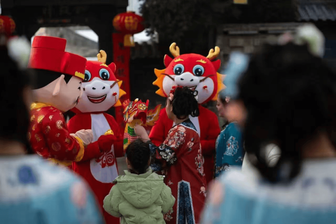 活动内容:身着萌趣生肖玩偶服的使者,沿古村核心游览环线巡游,与游客招手互动、派送福字贴、文创小礼品,并邀游人加入巡游队伍,共赴一场热闹喜庆的新春之约。