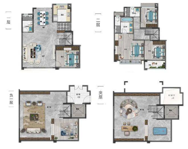 地下双层空间是叠院的又一特色。业主可随心打造家庭影院、瑜伽室、酒窖、孩子游乐场等百变活动区,满足家庭成员不同的兴趣爱好,让生活充满乐趣。该户型以其独特的设计、宽敞的空间和高附加值,为改善型购房者提供了高品质的居住体验,满足了对生活品质和空间功能多样化的追求。